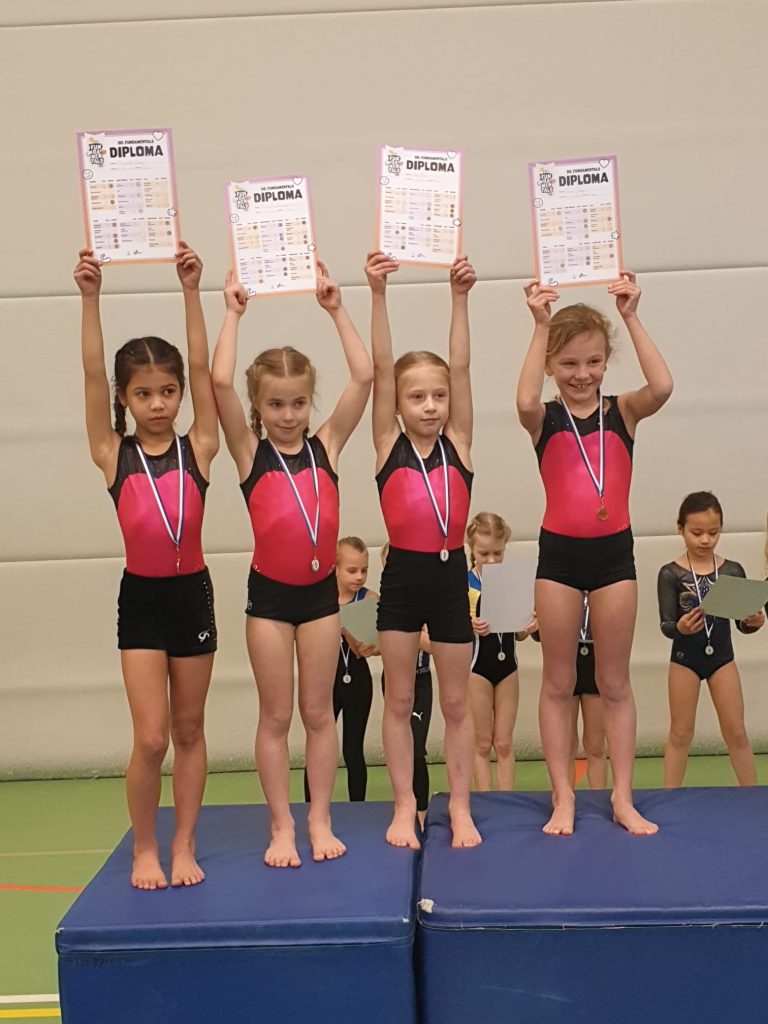 Deze meiden turnden mooi en netjes en genoten zichtbaar en dat deed uiteraard ook het door hen meegebrachte publiek. De meiden zijn mooie ervaring rijker en enthousiast om de volgende stappen te trainen. Binnenkort zullen zij nogmaals aan een meetmoment meedoen, waarbij ze voor een stapje hoger gaan.